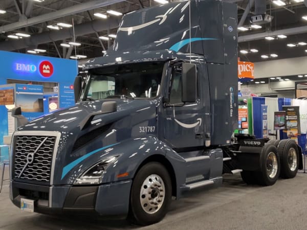 An Amazon Freight Partners tractor is shown equipped to run on CNG or RNG.