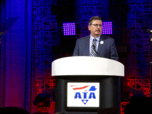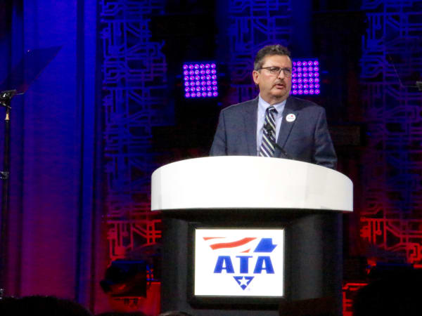 New ATA President & CEO Chris Spear gives a fiery speech, taking aim at "cubicle-dwelling idealogues" in Washington. Photo: Evan Lockridge