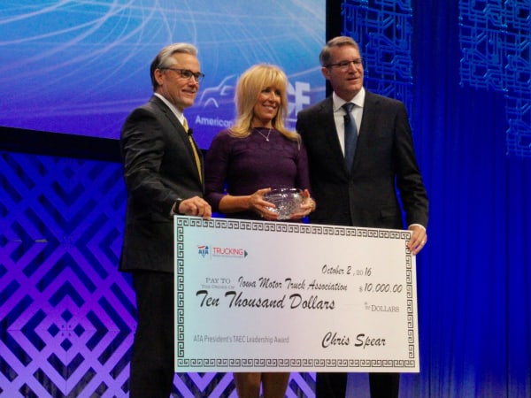 Iowa Motor Truck Association President Brenda Neville was named the 15th recipient of the Trucking Association Executives Council Leadership Award. Photo: Evan Lockridge