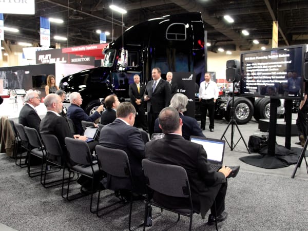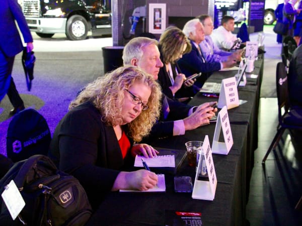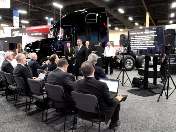 Mack shares its latest news with reporters. Photo: Evan Lockridge