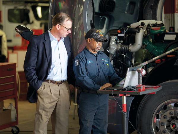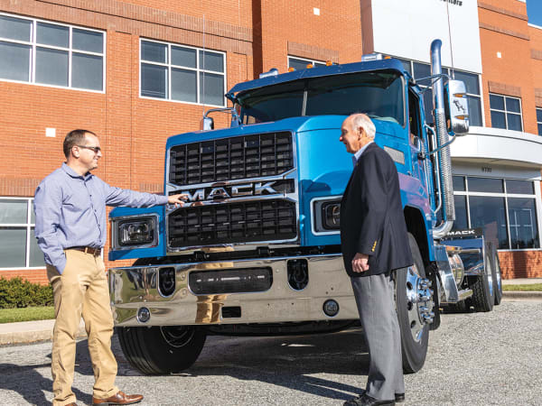 Transource Trucks' Jim Bland, right, says more of its customers are spec’ing for safety and fuel efficiency.