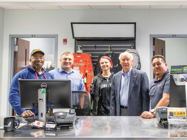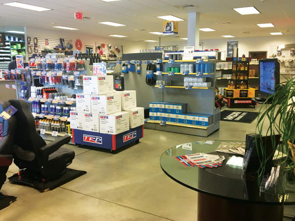 Transource Trucks has a parts inventory of more than $8 million. Dealer of the Year Finalist Jim Bland, vice president, is second from right.