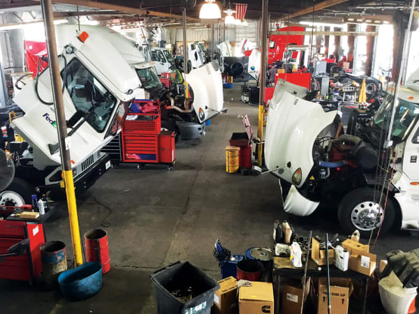 The General Truck Sales and Service service department consists of 20 service bays and a drive-through service lane.