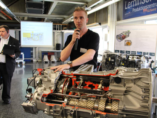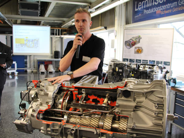 Daimler Trucks officials talk about the new Detroit DT12 automated manaul transmission to North American trucking journalists in Gaggenau, Germany.