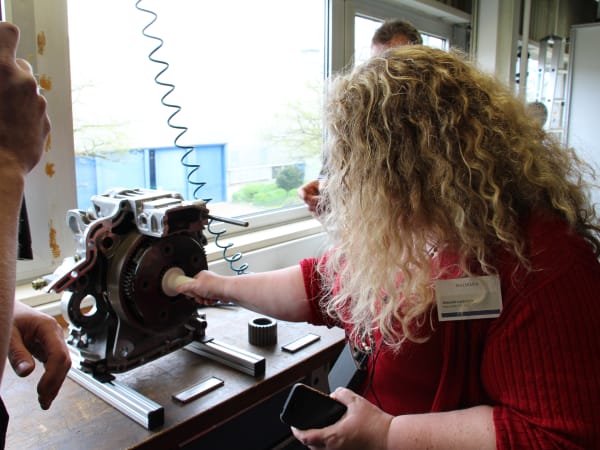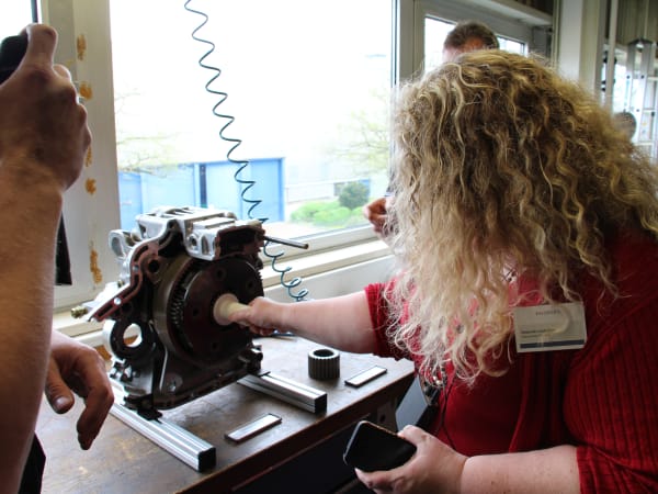 HDT Editor in Chief Deborah Lockridge shows how easy it is to spin the planetary gearing inside the transmission.