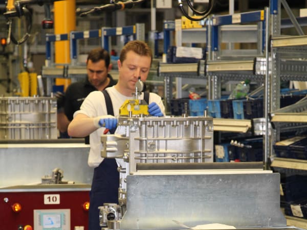 An overview of Daimler's transmission assembly facility in Gaggenau, Germany.