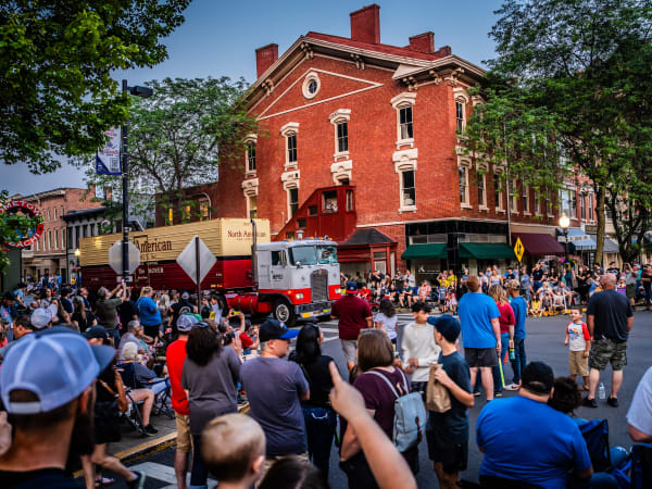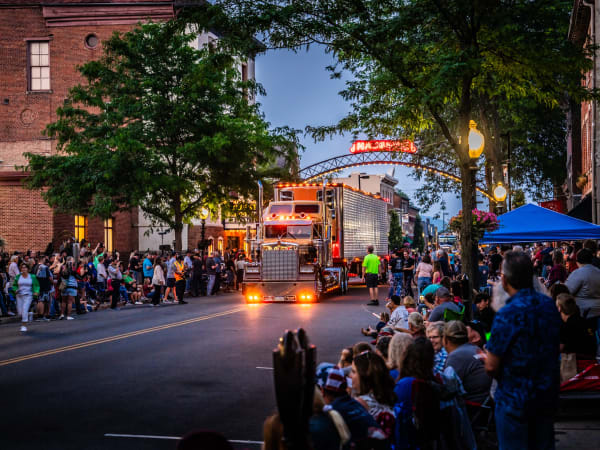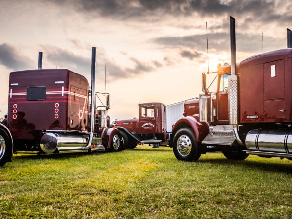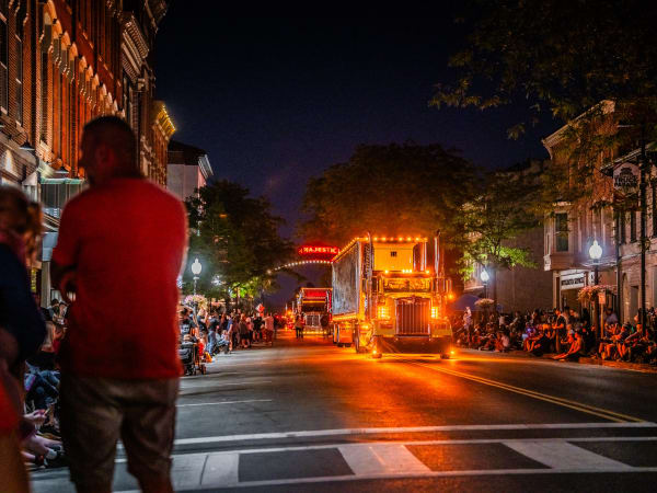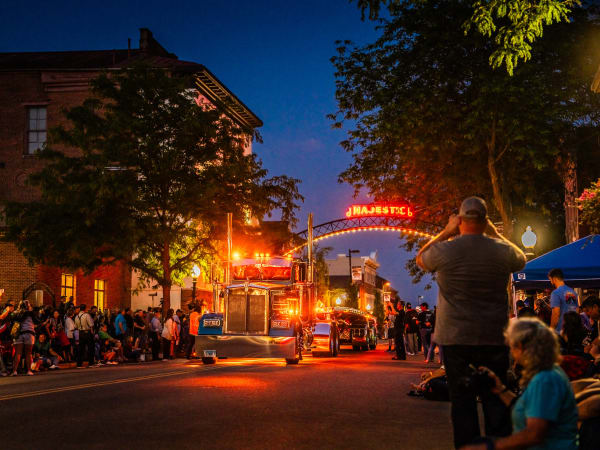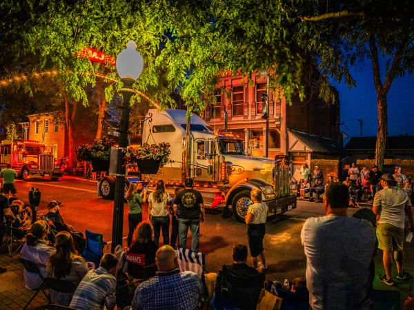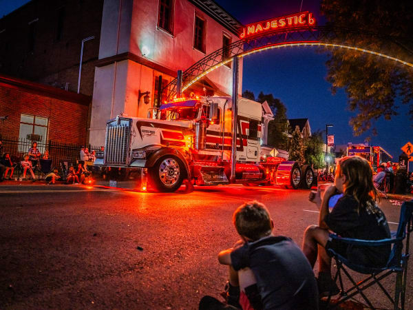 The parade begins with a 1972 Kenworth K125 as the sun begins to set.