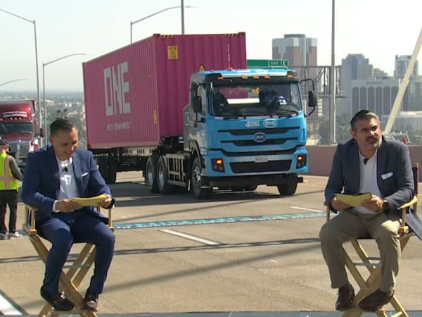 Several BYD electric trucks were featured in the parade.