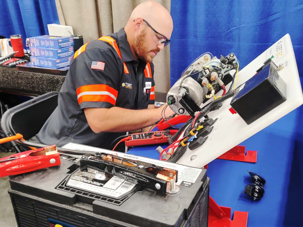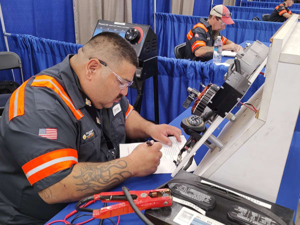 Branden Yost works through the challenge at the station for heavy-duty starting and charging during Top Tech.