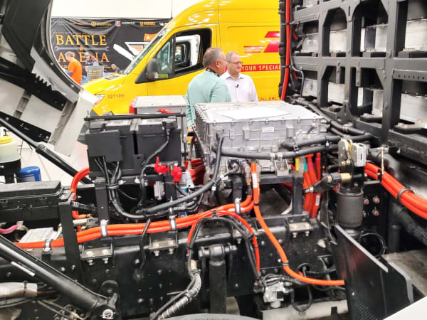 The motor of the BYD was on display, and the truck was part of the heavy-duty truck EV safety station.