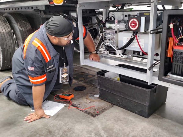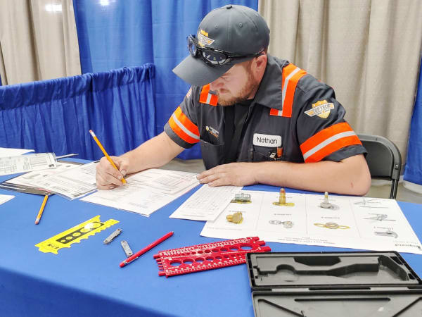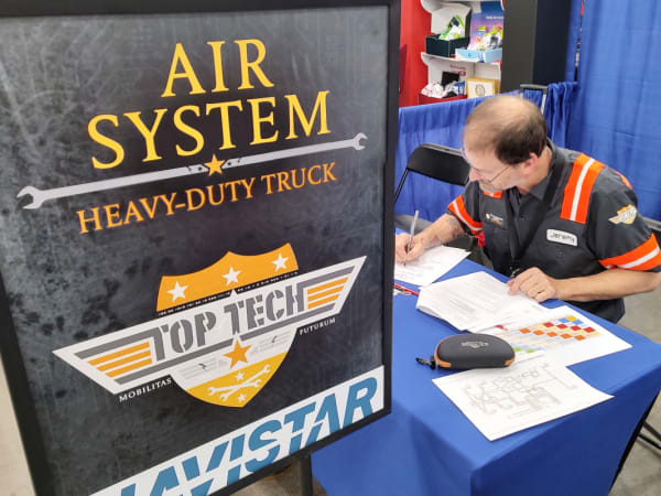 Jeremy Ross Piepmeier works through a challenge at the heavy-duty truck air system station.