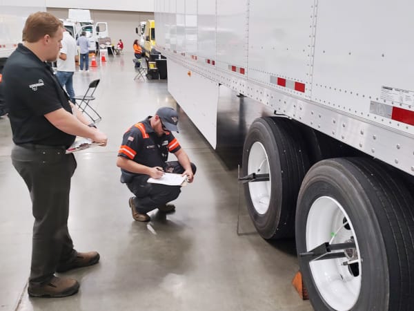 Peter Aumau works on a liftgate system, one of the challenges for the trailer category of competitors.