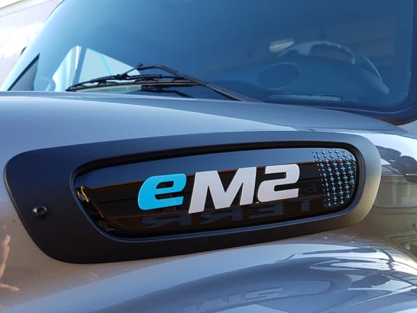 The new dash panel in a production-intent eM2 cab. It’s still a work in progress.