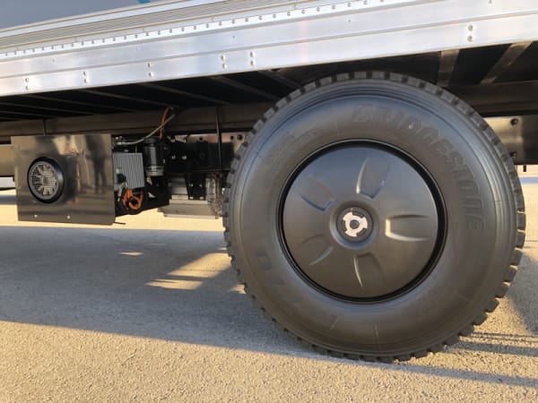 The 270-hp motor is located close to the drive axle, resulting in a very short driveshaft. That frees up space between the frame rails for batteries, cable and the associated electronics packages.