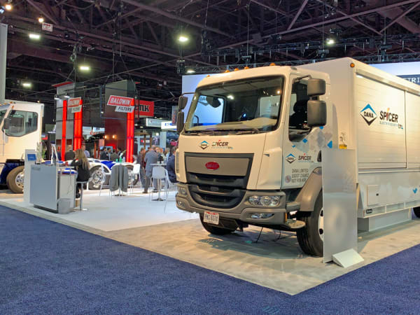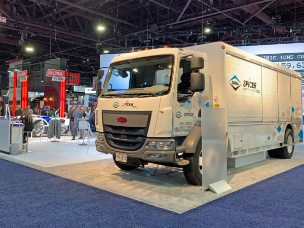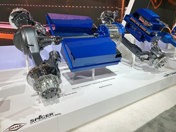 The component makers displayed their progress in creating axles, transmissions and other components for electric trucks.