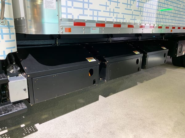 Citing its legacy as a “power company,” Cummins displayed a hydrogen fuel cell truck as a “technology demonstrator.” The Class 8 concept tractor features a new, proton exchange membrane fuel cell that converts hydrogen into electricity, which is then used to power electric drive motors to move the vehicle.