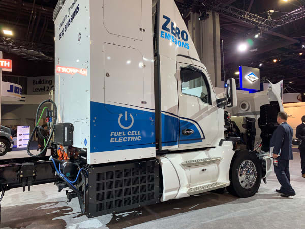 Freightliner didn’t have any fuel-cell trucks on display, but Daimler Trucks North America President and CEO Roger Nielsen told reporters that by the end of the 2020s, Daimler will bring fuel cell trucks to series production.