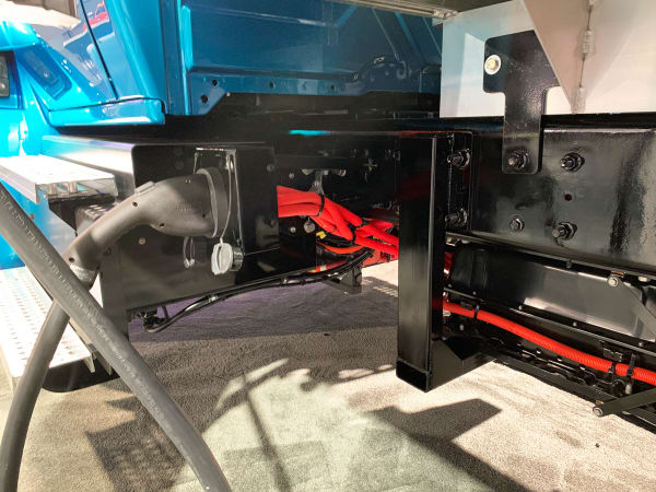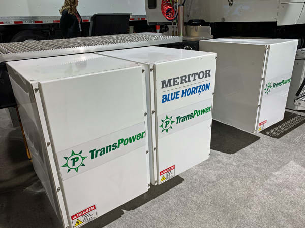 The Peterbilt Model 579EV uses Transpower and Meritor Blue Horizon components.