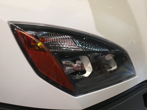 LED headlights are standard. These have a complex reflector and integrated turn signals.