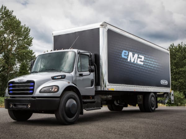 The Freightliner eM2 106 has 480 peak horsepower and a range of up to 230 miles.