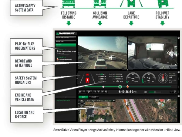 SmartDrive captures video and data from the ECU and active safety systems, which enable G&P to have direct and informed conversations about driving performance.