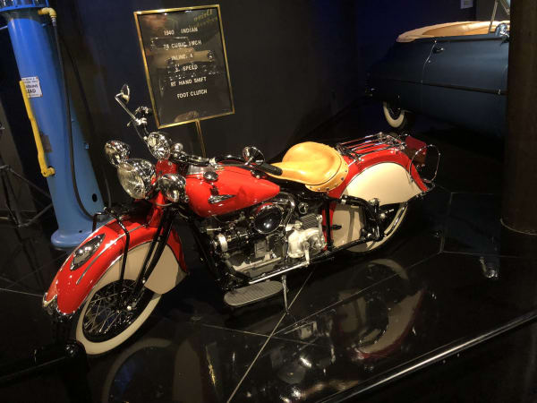 The Gateway Car Museum has a few motorcycles as well -- like this pre-War Indian.