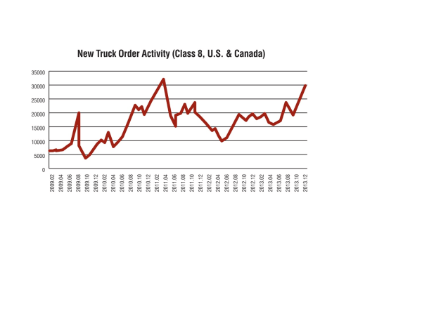 Throughout 2013 new truck orders remained quite strong and surged at the end of the year. But, they remained well below the levels seen in 2004-2006. Source: FTR