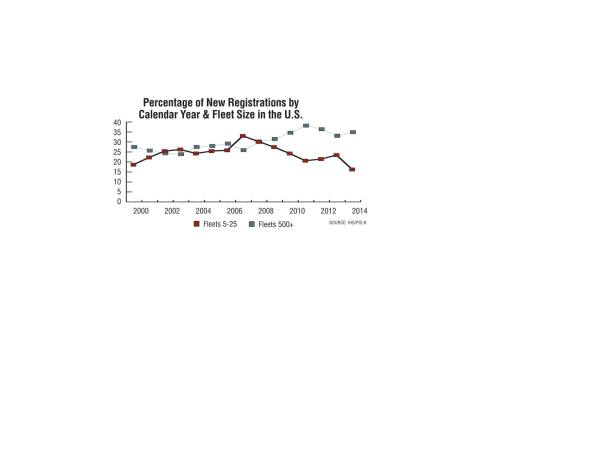 The current strength of the market is big fleets, which have been on the decline for the past two years after peaking in 2011. Source: IHS/Polk