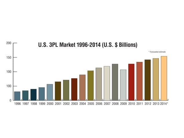 The U.S. third party logistics market gross revenue grew 3.2% from 2012-2013. Armstrong & Associates estimates that growth will be 5.2% for 2014 as the U.S. economy continues to expand. Source: Armstrong & Associates