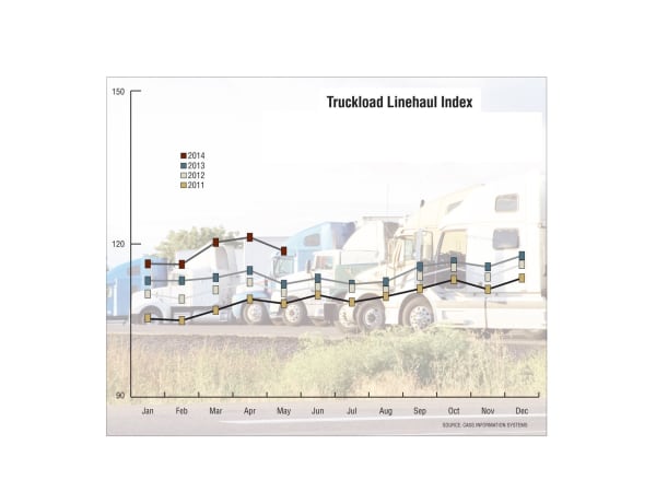 The Cass Truckload Linehaul Index is an accurate, timely indicator of market fluctuations in per-mile truckload pricing. The index isolates the linehaul component of full truckload costs from other components (e.g. fuel and accessorials), providing an accurate reflection of trends in baseline truckload prices. As of June 2014, truckload linehaul rates paid by North American shippers were 5.2% higher than in June of 2013. Source: Cass Information Systems