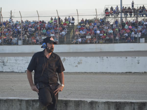 Driver and crew chief talk before a heat.