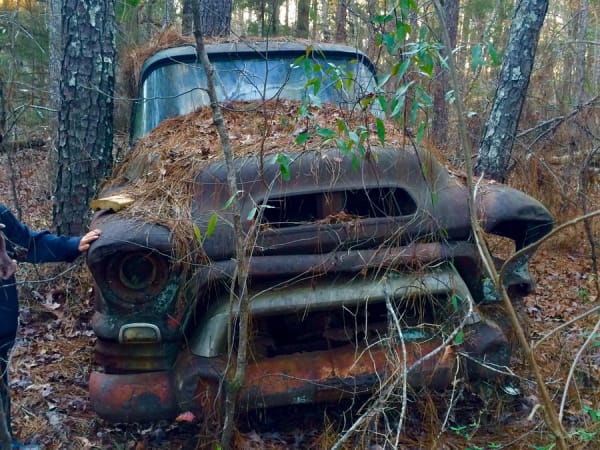 My girlfriend found this old truck in the woods while roaming around with her sister in the summer. Photo: Christina Hamner