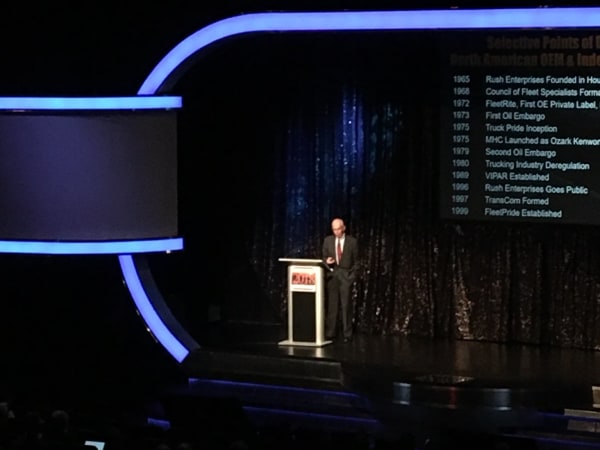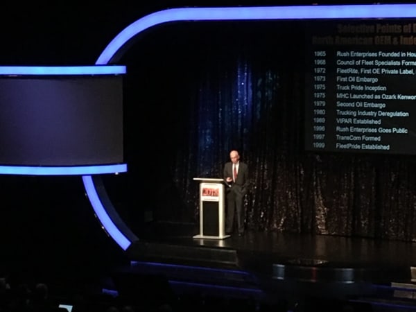 Bob Dieli talks about MacKay & Co.'s Truckable Economic Activity during Heavy Duty Aftermarket Dialogue, the day before HDAW. Photo courtesy Today's Trucking.