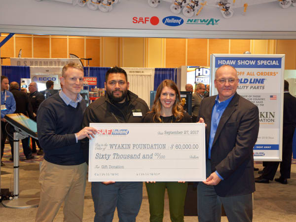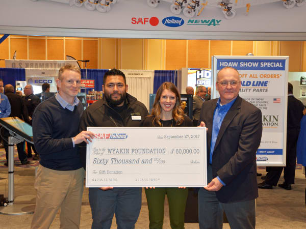 SAF-Holland presented a check to the Wyakin Foundation and announced its continued support of the foundation through its Gold Line Quality Parts product line with Vipar Heavy Duty members. Photo: Justin Miller