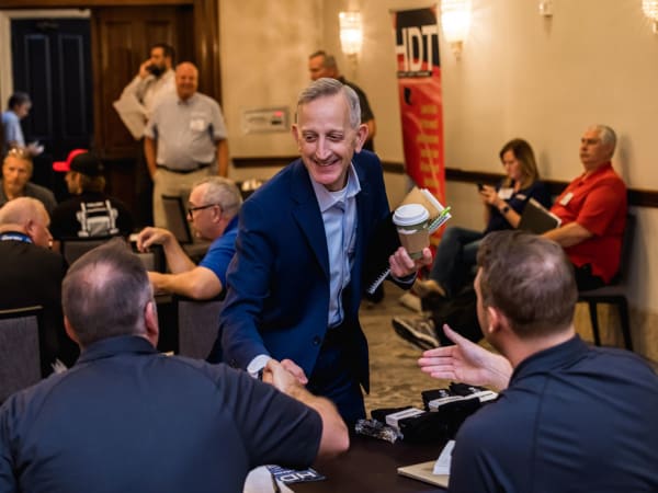 HDT 2022 Truck Fleet Innovator Keith Wilson wraps up a one-on-one session with suppliers.