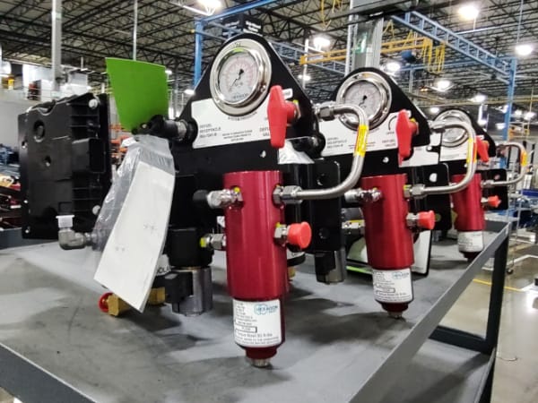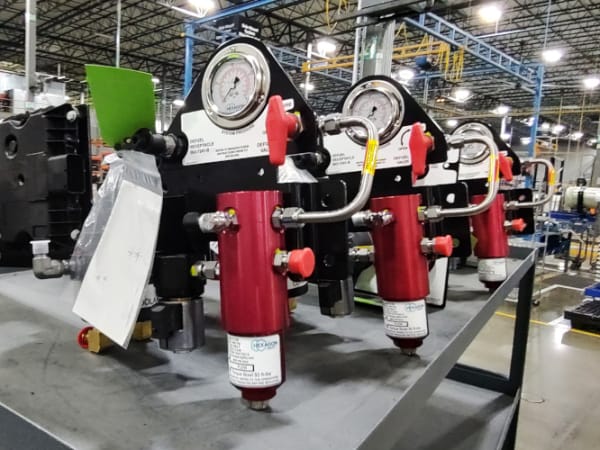 A ProCab subassembly of a high-pressure filter waits for the next production step.