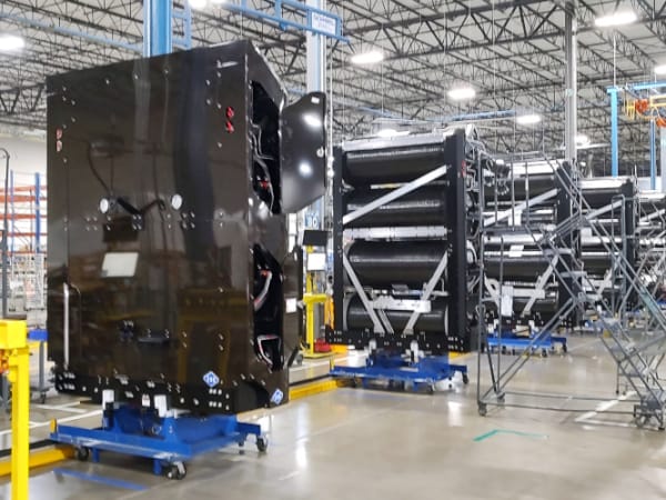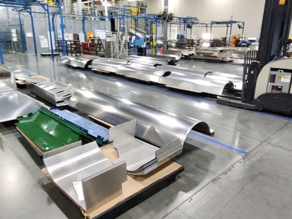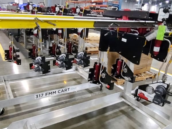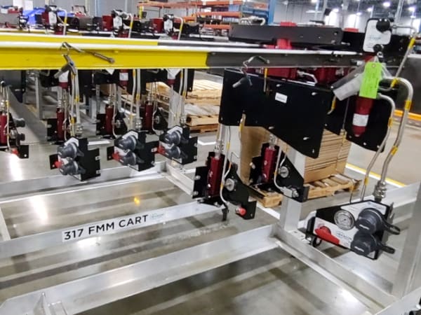 A ProCab FMM subassembly is stored on a Kan-Ban cart during production.