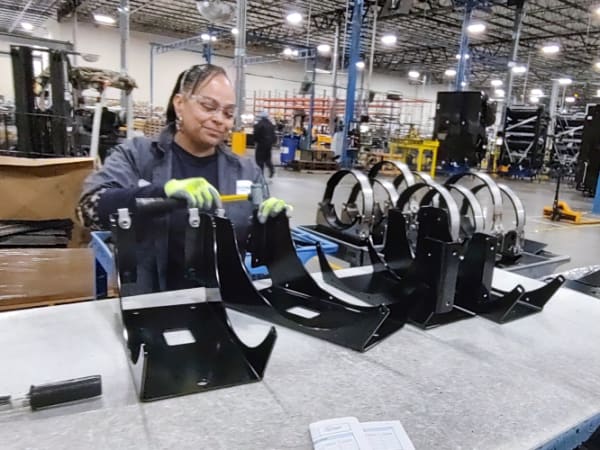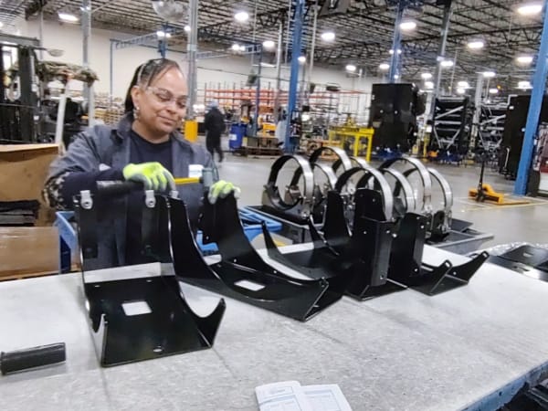 Medium-duty ProRail brackets are prepped before heading to the main assembly line.