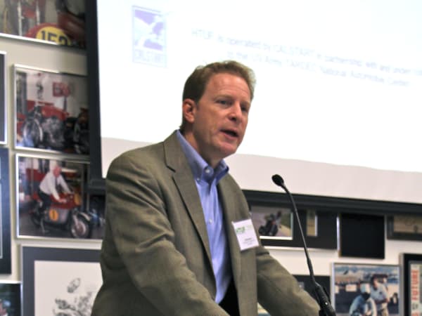 Kevin Beaty, Calstart VP, addresses those attending the High-Efficiency Truck Users Forum event in Birmingham, Ala.