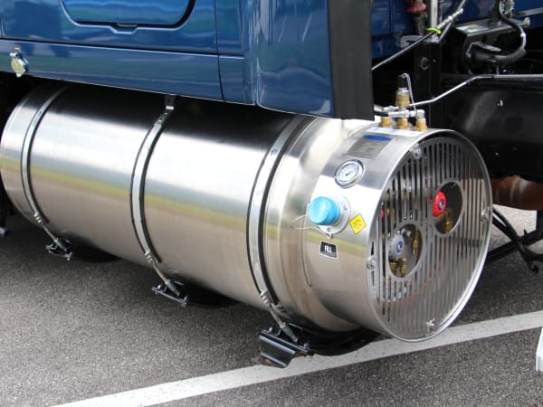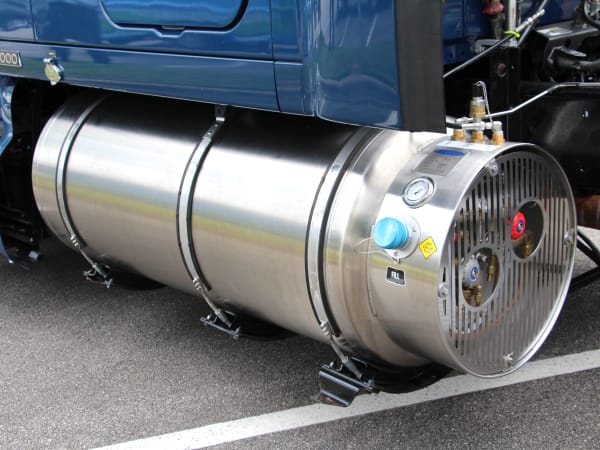 Natural gas tank on a Kenworth T2000 equipped with NGV Systems diesel/natural gas hybrid conversion system.
