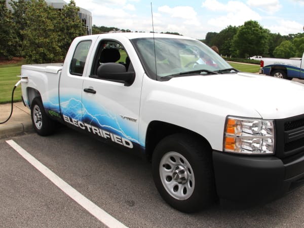 Plug-in on the Chevrolet Silverado with E-REV All-Electric Powertrain from VIA Motors.