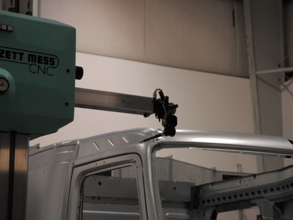 3. For quality control purposes, every so many cab assemblies are pulled from the line and measured by instruments to ensure consistency in the process. The probes measure to the millimeter.