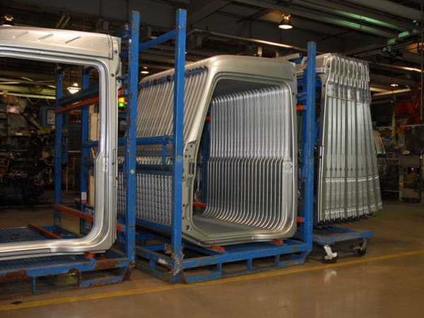 1. Body panels such as roofs, door surrounds, firewalls, back and side walls, etc. are staged at the beginning of the assembly line.