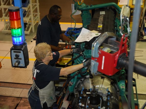 11. In yet another part of the plant, workers dress and prep the engines which are shipped in from Volvo's Hagerstown, MD engine plant or from Cummins in Jamestown NY.