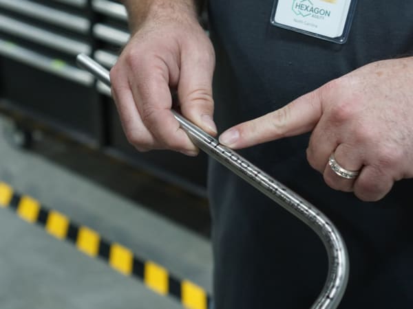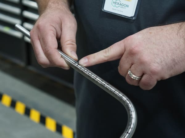 Hexagon laser-etches each piece of tubing with a product number and date of manufacture for easy identification and replacement.