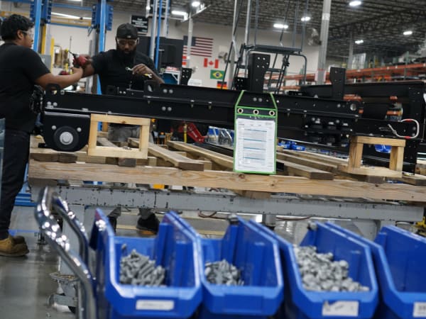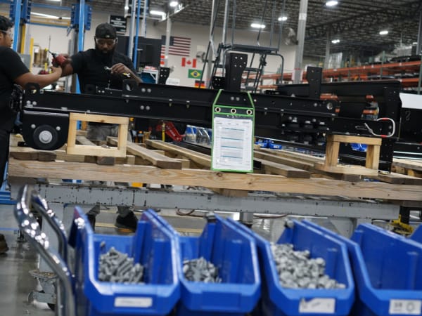 Hexagon Agility workers assembling a main frame, which will hold CNG cylinders to a truck chassis.