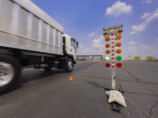 Drivers set up on a straight away course with a light tree to test acceleration power.