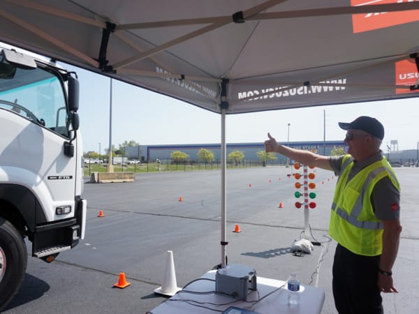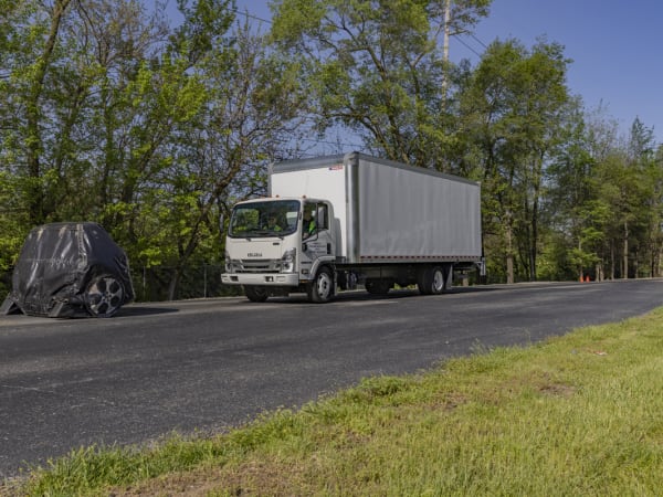Isuzu had its Class 5 Isuzu NRR truck available to demostrate the company's propreitary automatic braking functionality at test tracks adjacent to the Allison Transmission Innovation Center.
