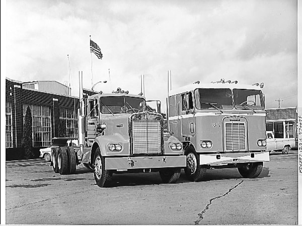 Early 1960s: Kenworth introduced two new models. The W900 conventional featured classic lines, long hood, wider and taller cab, a re-designed instrument panel, and enhanced driver comfort. The K100 cabover was designed for maximizing cargo within state restrictions.