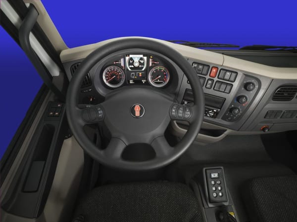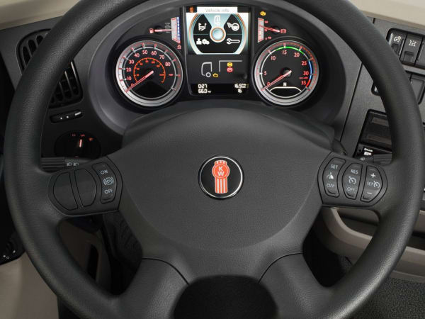 Kenworth's SmartWheel puts the most frequently used controls such as cruise control and engine brake at the driver's fingertips.